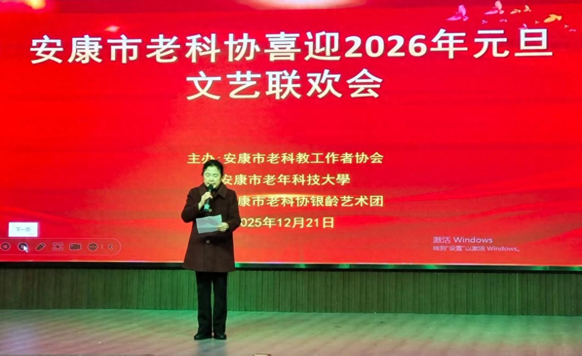 联欢会由市教体局原局长、市老科协副会长邹成燕主持并致辞,市政协原副主席、市老科协会长黄秀玲作重要讲话。她指出;在我们即将要昂首阔步迈进充满希望的2026年,值此辞旧迎新之际,我谨代表市老科协向始终以来关切、帮助、支持市老科协事业发展的广大家属和社会各界朋友致以真诚的谢意和节日的祝愿!向全体老科教工作者致以新年的美好祝福和问候!